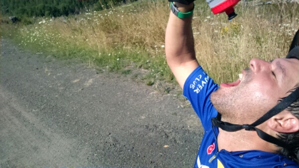 Once safely back on the pavement, I realized I was getting low on water, and was starting to look for some place to fill up. Unfortunately it wasn’t too long before I started climbing a serious hill (1,300 elevation). It was pretty hot, and there was nowhere to stop to refill. The only reason I had any water left at the top was because I was purposely conserving it. I was so thirsty at what I thought was the top, that I finished my last swallow.