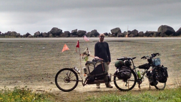 Finally, gate #6 stands before me. And on the other side? Pavement. And a hundred yards down, a house with a running sprinkler to ride my bike through. I’m tempted to go up and start drinking from the thing.